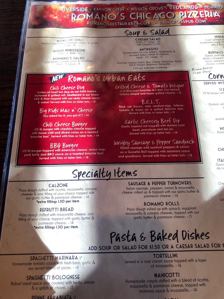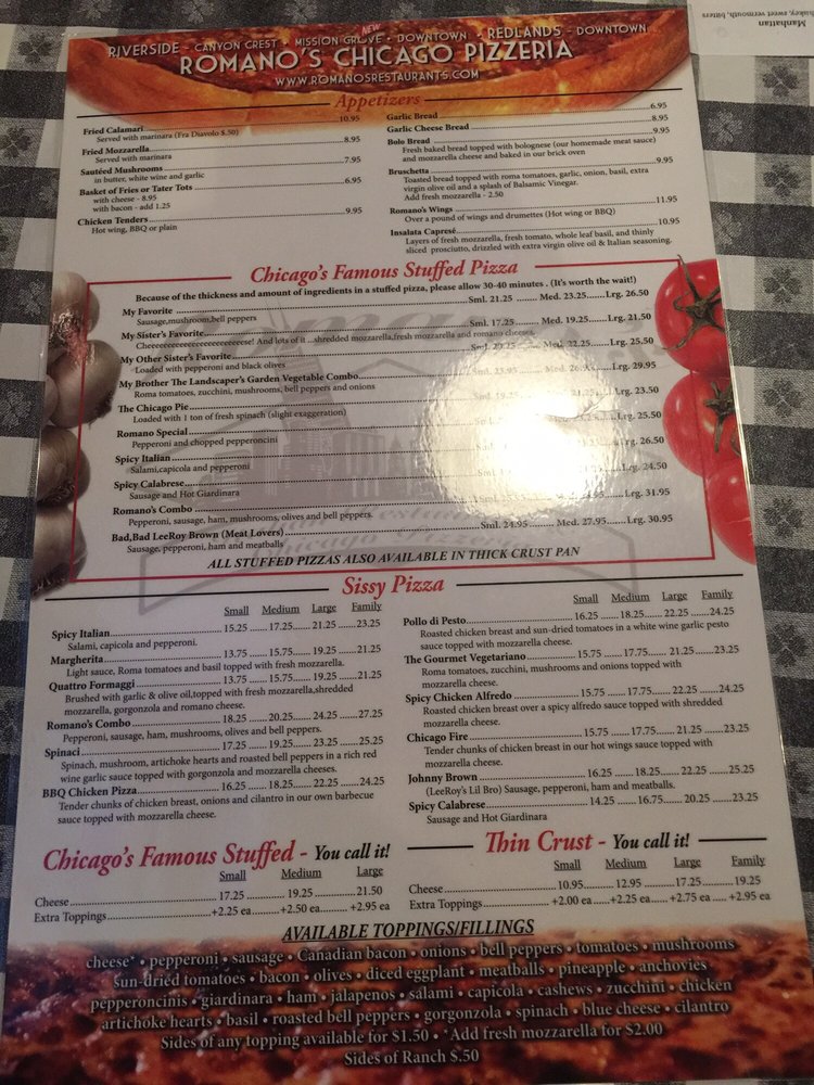 Welcome to Romano’s, a delightful Italian eatery nestled in Riverside, CA. Here, the menu brims with mouthwatering selections that capture the essence of Italy, focusing primarily on pizza, pasta, and fresh salads. Guests rave about the thin crust pizza, known for its delicious balance of flavors, and the hearty Fettuccine Capriccioso, featuring a creamy pink sauce that leaves a lasting impression.